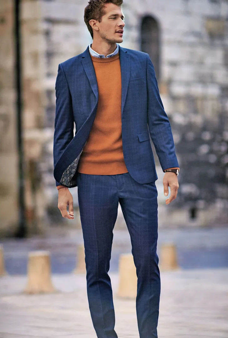 Существует ограниченное число правил, когда дело доходит до ношения костюма. Конечно, он должен идеально сидеть по фигуре, быть правильно застегнутым и с подходящей тканью для сезона, но что касается стиля – к нему подходит почти все. Это включает в себя добавление желанного цвета в темно-синий костюм в виде контрастной футболки или трикотажа.