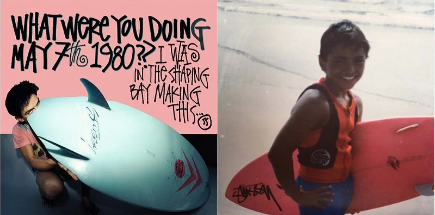 В 1980 году коренному жителю Калифорнии Шону Стусси пришла идея создавать доски для серфинга, сочетающих специфические формы с уникальным ручным графическим стилем, в котором отображались бы элементы музыки регги, панка и нового течения. Его творчество отдавало дань уважения как стилю граффити, так и его дяде - художнику-абстракционисту Яну Фредерику Стусси. Родители Шона владели типографией, в которой он научился основам работы с печатью всего в 12 лет. Прежде чем начать самостоятельную деятельность, Стусси изготавливал доски для Russell Surfboards, и идея создать свой собственный бренд для продажи одежды оказалась почти случайной - все началось с любви Шона к серфингу.