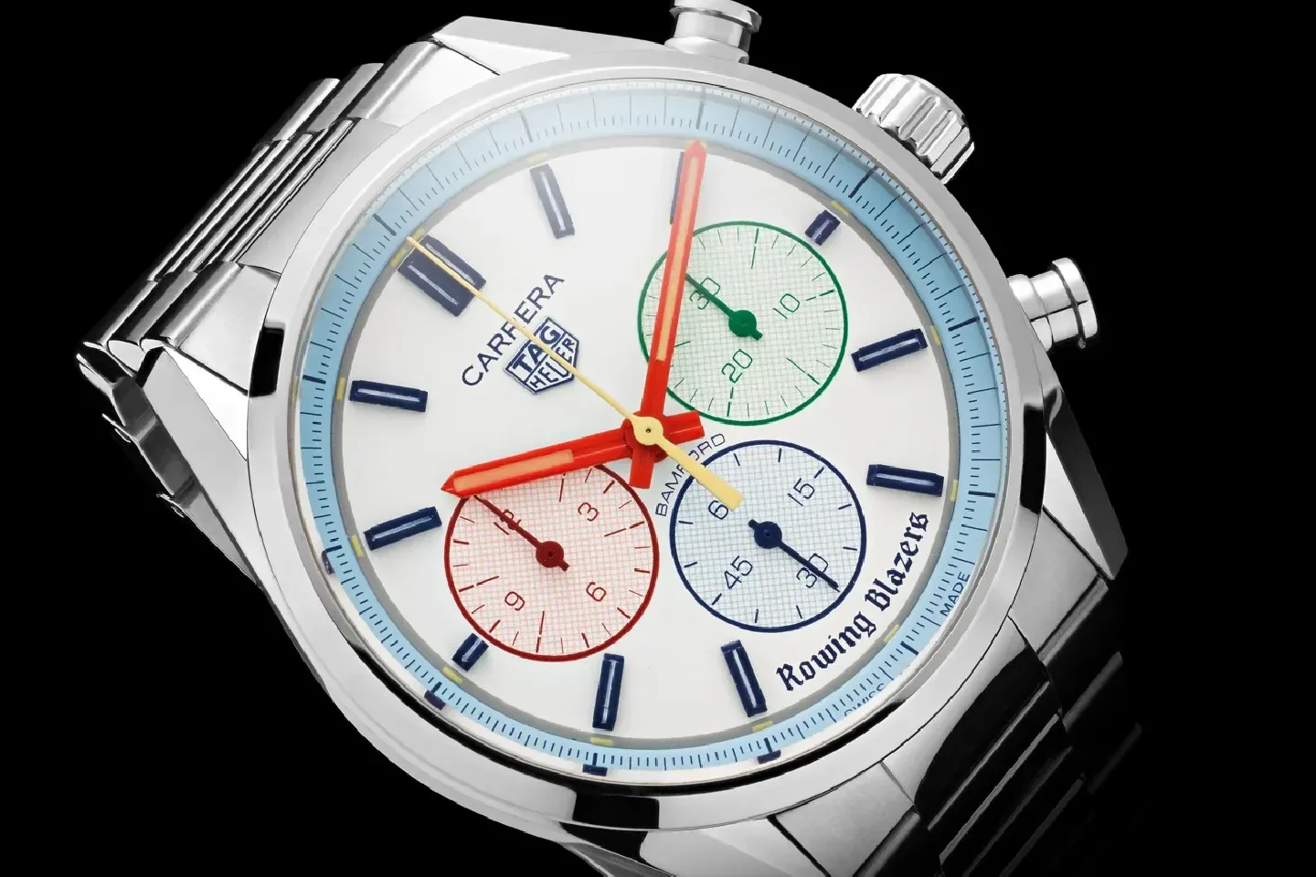 Модель Rowing Blazers x Bamford Tag Heuer Carrera — это очередной успех во вселенной Carrera от Tag Heuer в этом году. Модель доказывает, что она может быть успешной в любом стиле и исполнении — от точного воспроизведения культовых винтажных часов до красочного переосмысления любимой модели Skipper. «Carrera — один из самых знаковых и элегантных хронографов всех времен», — сказал Винд в интервью. «Ранняя модель Carrera была первыми дорогими старинными часами, которые я купил, и возможность создать такую модель была просто нереальной».