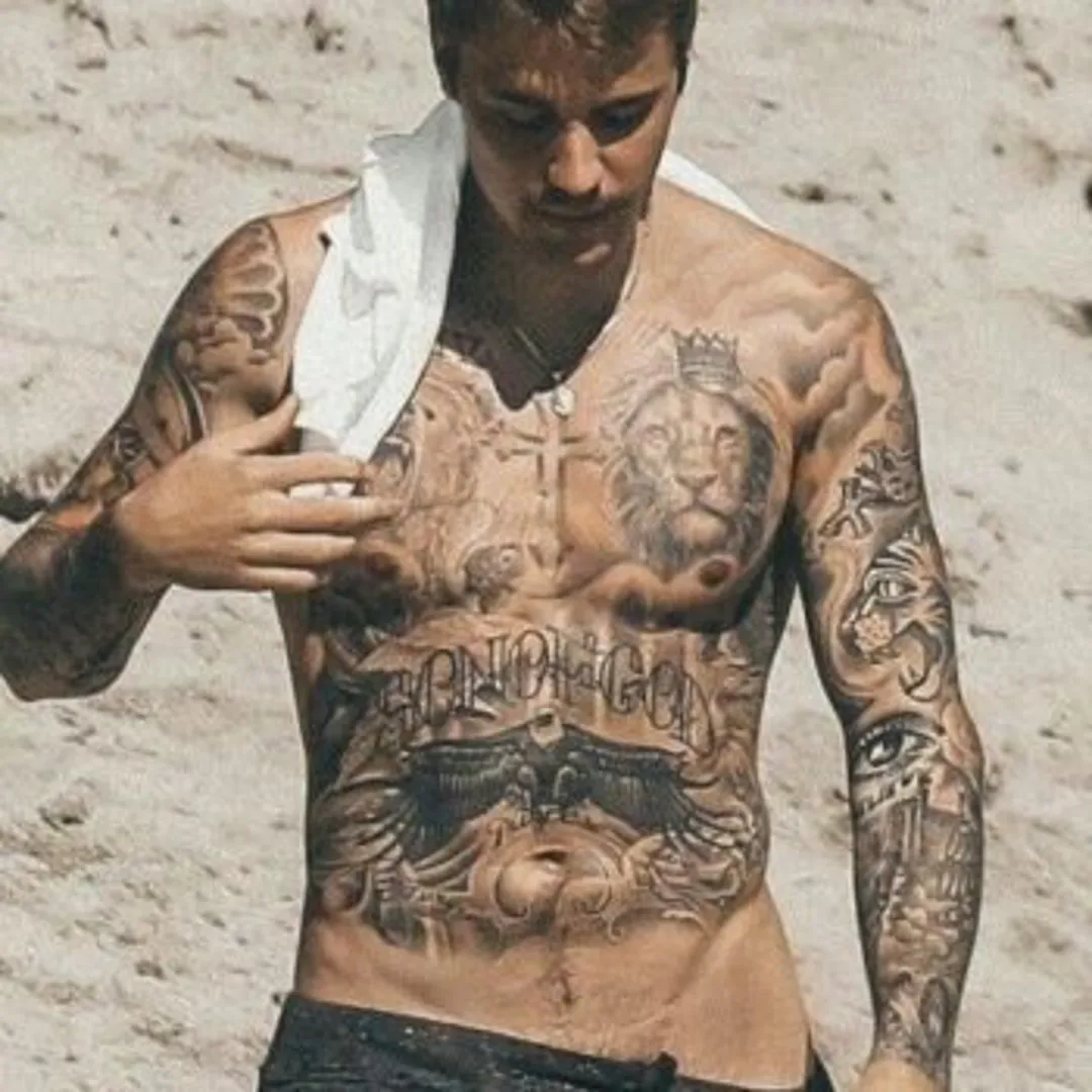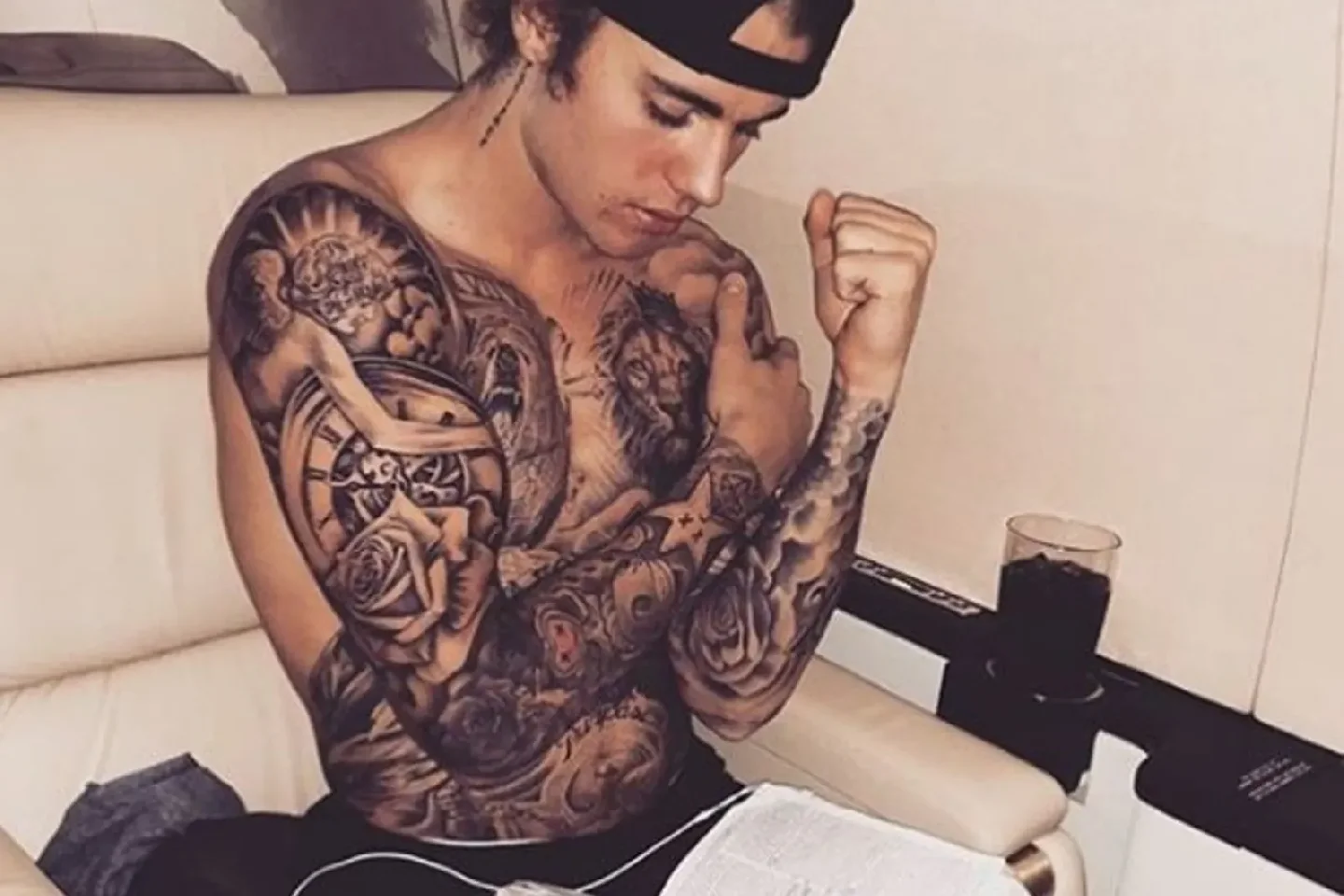 Джастин Бибер по-настоящему медийная личность, он не только с удовольствием делится фото с изображениями его тату, но и охотно объясняет значение многих из них. Сейчас на теле звезды сложно назвать область, не занятую татуировками, в среднем, их насчитывают около 24 штук.