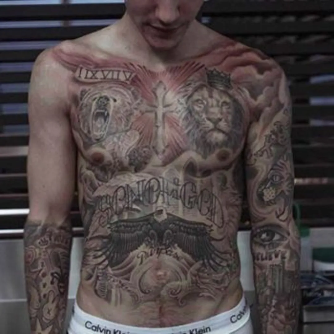 Несмотря на большое количество тату уже сейчас, свободное место на теле молодого человека осталось, остается только ждать новых рисунков.