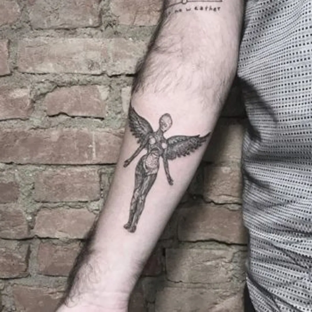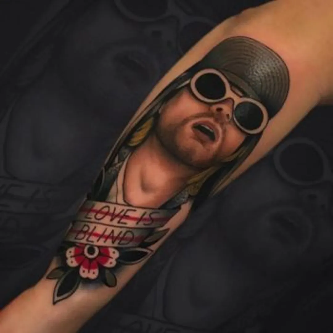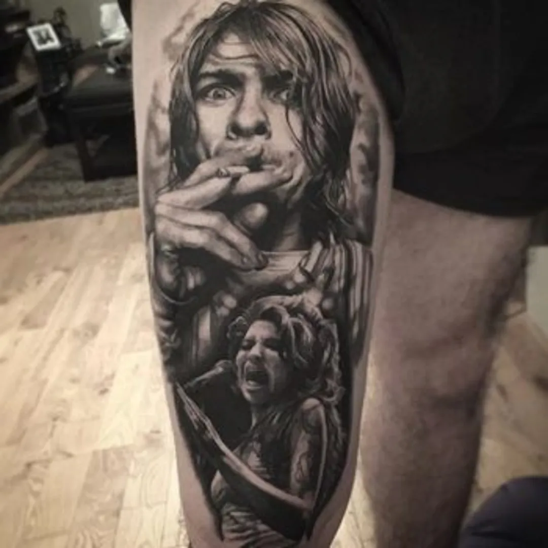 Известно также, что солист группы Limp Bizkit Фред Дёрст носит тату с изображением Кобейна.