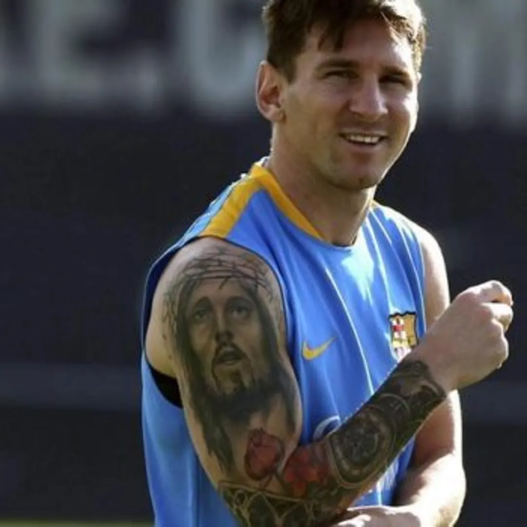 На правой руке Лионеля Месси красуется татуировка в виде рукава — он закрасил всю конечность от плеча до запястья. Причем не абы какими рисунками, а религиозными. Его плечо украшает изображение Иисуса Христа в терновом венке, что является подтверждением того, что знаменитый футболист — верующий человек. По его словам, он чувствует, что Бог всегда рядом с ним и в его душе. Через некоторое время слева от этой татуировки появилась еще одна — изображение большого глаза женщины.