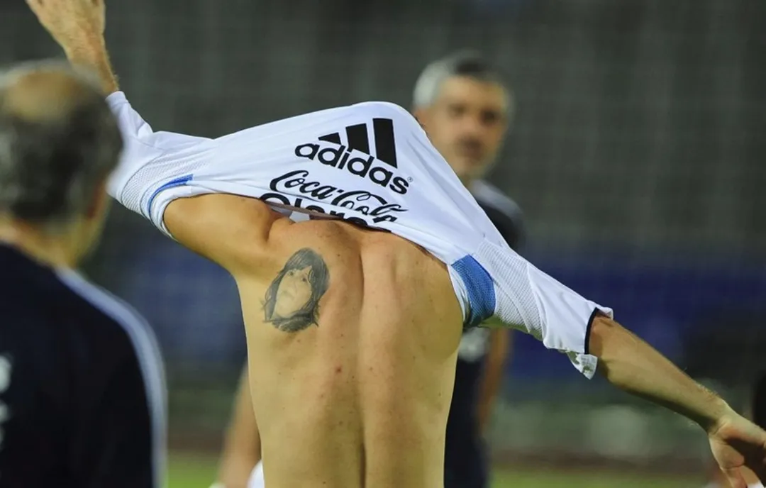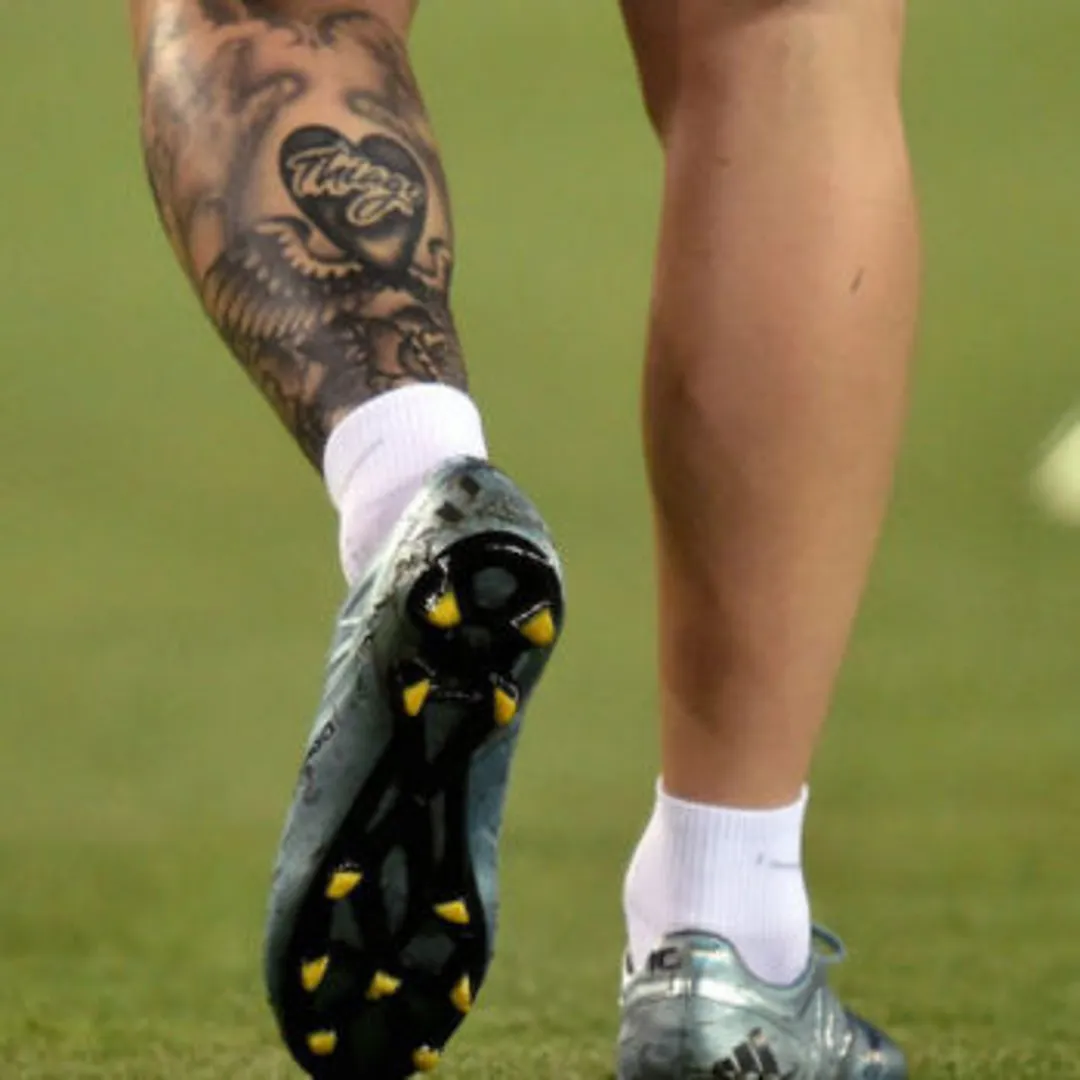 На левой ноге известного футболиста набита татуировка с очень сложной композицией. Это изображение посвящено одновременно и футболу, и его первенцу, который подарила ему супруга Антонелла Рокуццо. На татуировке изображена маленькая ладошка младенца и виднеется надпись «Тьяго». Через некоторое время татуировку дополнили крылья и изображение сердца.