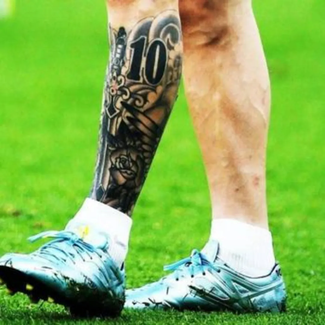Также на ноге Месси есть татуировка, прямо посвященная футболу. Это футбольный мяч, дополненный мечом с розой и номером 10 — это его футбольный номер, под который он играет. Эти образы футболист выбрал не просто так — они символизируют силу и мощь Месси в футболе, его храбрость и самоотдачу. И правда, Лионель Месси за годы своей футбольной карьеры показал немало успехов: он получил максимальное число наград не только в Аргентине, но и по всему миру. А также он является самым титулованным футболистом Аргентины за всю историю национальной сборной. И это учитывая то, что Лионелю Месси всего 31 год!