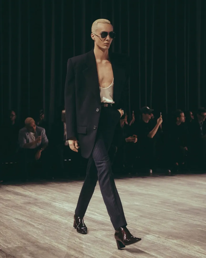На берлинском показе новой мужской коллекции Saint Laurent весна/лето 2024 многие гости в первом ряду направили свои смартфоны на последнюю эволюцию соблазнительного предложения мужской одежды, разработанного Энтони Ваккарелло. Среди знаменитостей, присутствовавших в Neue Nationalgalerie, одетых в новые модели звездного бренда вечера, не было классического модного авторитета. Его никогда не будет», — императивно заявил Ваккарелло за кулисами незадолго до того, как погас свет. «Даже на показах женской моды нет влиятельных лиц. Мы уделяем много внимания этой детали.