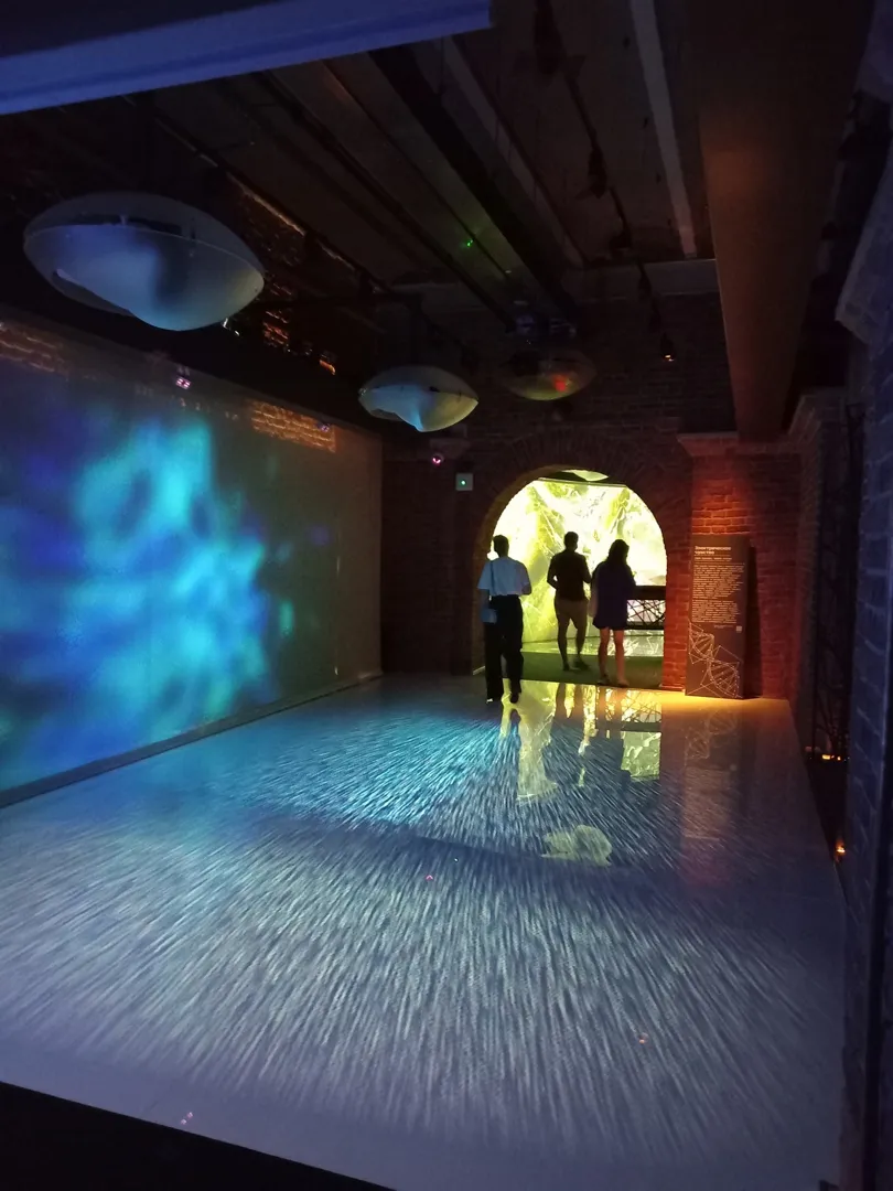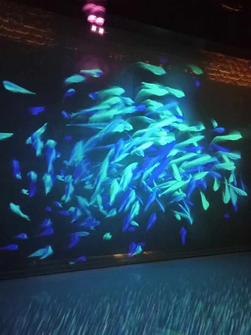 Зал представляет имитацию водной среды, где каждый может получить ощущение электрочувствительности, которой обладали наши очень далекие предки. На полу вокруг посетителя проект создает иллюзию магнитного поля, а рыбы на стене погружают визуально в самые глубины океана.