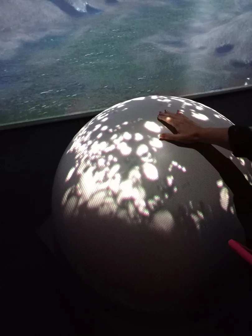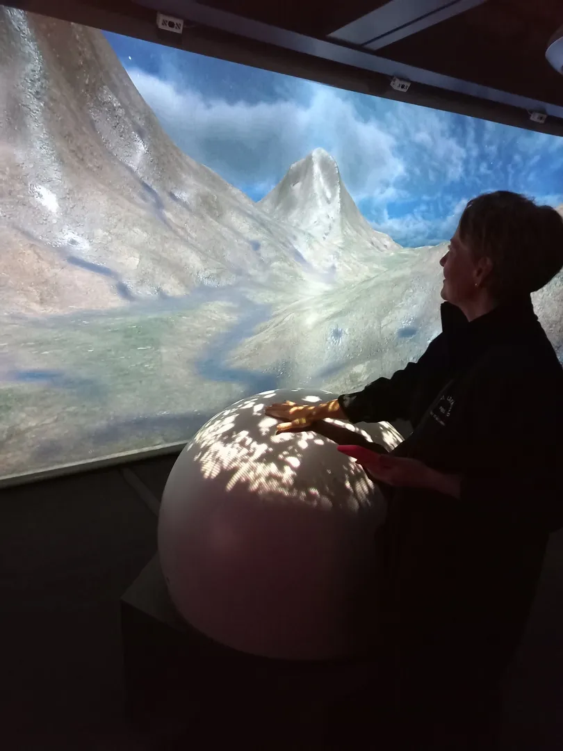 В центре зала находится полусфера. Своеобразный «пульт» эволюции геологического ландшафта. Человеческой рукой посетителя выставки вершатся судьбы гор, образования расщелин, равнин и утесов.