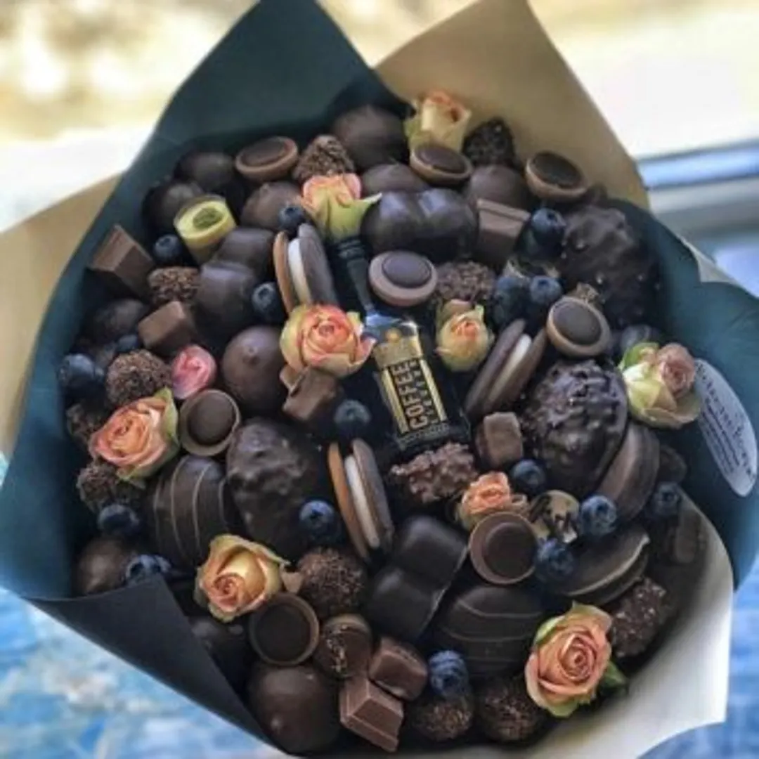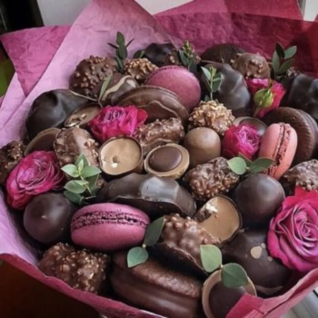 Если подружка отличается большой любовью к сладостям или другим специфическим продуктам, можно преподнести вкусный подарок. Возможно она обожает фрукты или шоколад, самодельный букет из этих вкусностей, может оказаться очень забавным.