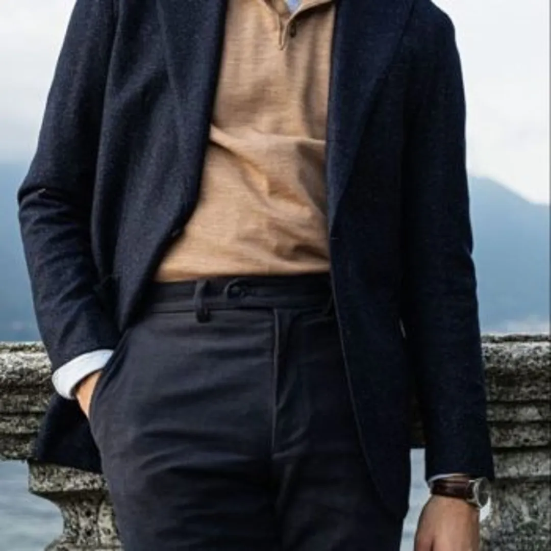 Молескиновые брюки с небольшим ворсом похожи на замшевые. Они мягкие, удобные и являются хорошей зимней альтернативой для брюк чинос — в некоторых случаях ткань настолько плотная, что эффективно защищает от ветра. Делая покупки, обратите внимание на немного более свободный крой из-за жесткости ткани.
